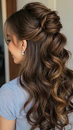 So, you’re getting ready to tie the knot? Or maybe you’re just dreaming of the perfect prom look? Well, check out this gorgeous wedding hairstyle! It’s like the fairy-tale version of a half-updo, and that sparkly headband makes it look like you caught a unicorn and turned its horn into jewelry. Plus, those waves? Total mermaid vibes.