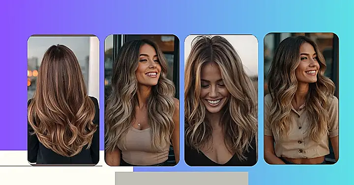 This picture is like looking into a magazine! The girl in the photo has those super-long, gorgeous waves. Her hair is a perfect blend of brown and blonde, kind of like a chocolate chip cookie with some sprinkles. It’s the kind of hair that makes you wish you could just run your fingers through it.