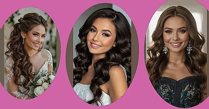 Imagine yourself walking down the aisle, looking like a princess with hair that literally shimmers! With this Hollywood waves hairstyle, you won’t need a tiara—your hair will be the crown jewel of your entire wedding day ensemble. It’s the perfect mix of classic elegance and modern sophistication. Plus, it’s super versatile; you can easily accessorize it with flowers, a veil, or even a sparkly headband to match your unique wedding style. So, ditch the boring updo and embrace your inner movie star – your wedding photos will thank you for it!