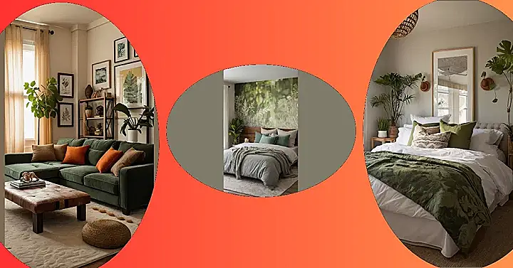 Imagine waking up and thinking you’re in a super stylish jungle! This bedroom is packed with nature’s greatest hits. There’s a chill green sofa that screams, “Come relax!” and enough plants to make your allergies go wild (but in a good way, because it looks awesome). The tree mural on the wall gives it that extra “wow” factor.