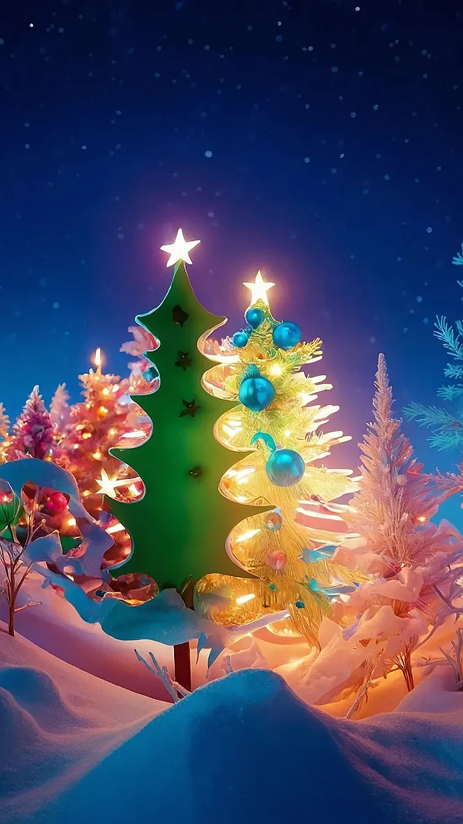 This wallpaper is like a mini winter wonderland straight out of a Christmas movie! You’ve got a sparkling, glowing Christmas tree with blue ornaments (who doesn’t love a little blue bling?) and a whole forest of other trees decorated with lights and glitter. It’s like a magical snow globe come to life! Imagine the Christmas spirit this wallpaper would bring to your phone.