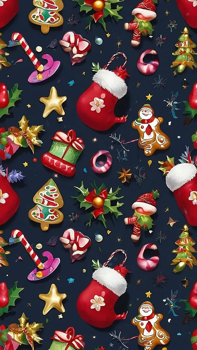 This wallpaper is like a Christmas explosion! It’s packed with all the holiday goodies, from candy canes and gingerbread men to Christmas trees and stockings. You’ve got enough festive cheer here to keep you smiling until Santa arrives!