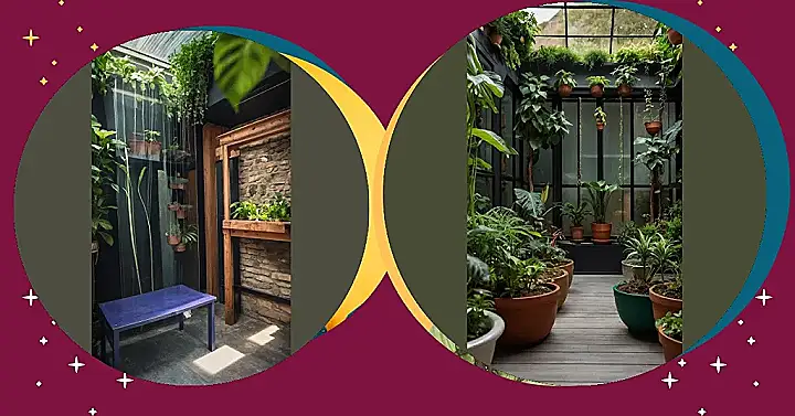 This garden is proof that you don’t need a big backyard to have a beautiful green space. It’s like a little bit of nature brought inside! There are hanging plants, tall leafy friends, and even some plants that look like they belong in a tropical rainforest. It’s amazing what you can do with a little creativity and a passion for plants!