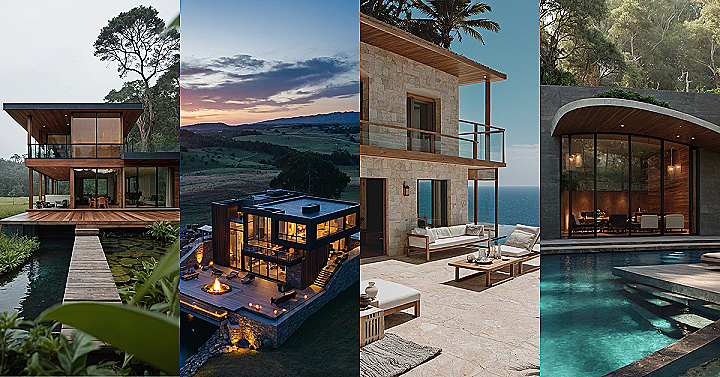 Meanwhile, perched on a hill with panoramic views of rolling hills and a shimmering lake below, a modern architectural marvel stands as an epitome of contemporary elegance and luxury. Floor-to-ceiling windows flood the interior with natural light, blurring the lines between indoor comfort and the breathtaking outdoors. Sleek, minimalist dΓ©cor and designer furnishings blend seamlessly with earthy elements like raw stone accents and lush indoor greenery, creating a harmonious blend of sophistication and nature. A pristine infinity pool reflects the endless azure sky, inviting a refreshing dip while lounge chairs beckon for moments of relaxation and contemplation under the vast expanse of the heavens. This modern masterpiece offers a sanctuary for the soul, a retreat where the chaos of the world fades away, leaving only peace and tranquility in its wake.