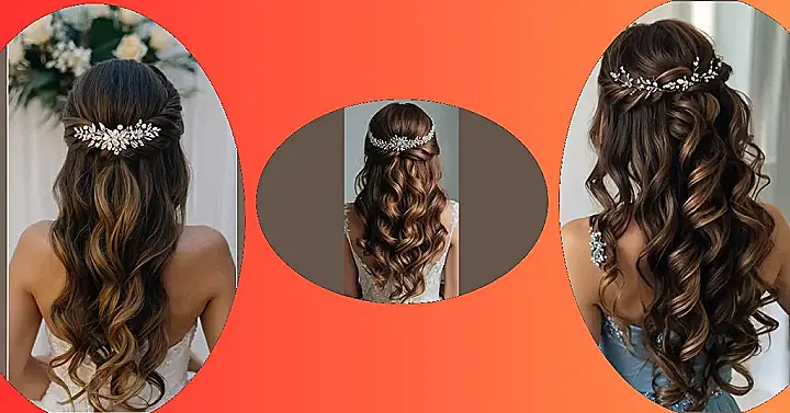 That elegant half-up look isn’t just pretty; it’s like a superhero cape for your hair. It keeps the hair out of your face, so you can eat cake and dance all night long without turning into a hairy monster. And let’s be real, nobody wants a face full of hair when the photographer yells “SMILE!”