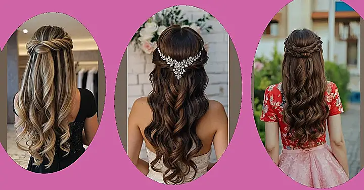 If you’re after cute but not *too* extra, this half-up style is your go-to. It’s the perfect way to keep your hair out of your face while you’re busy catching the bouquet, signing the guest book, or doing the cha-cha slide. Plus, that little bit of braiding at the back? Genius! It’s like a secret handshake for bridesmaids who know how to have fun and look amazing at the same time.