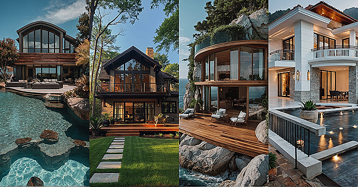 Meanwhile, perched on a hill with panoramic views of rolling hills and a shimmering lake below, a modern architectural marvel stands as an epitome of contemporary elegance and luxury. Floor-to-ceiling windows flood the interior with natural light, blurring the lines between indoor comfort and the breathtaking outdoors. Sleek, minimalist dΓ©cor and designer furnishings blend seamlessly with earthy elements like raw stone accents and lush indoor greenery, creating a harmonious blend of sophistication and nature. A pristine infinity pool reflects the endless azure sky, inviting a refreshing dip while lounge chairs beckon for moments of relaxation and contemplation under the vast expanse of the heavens. This modern masterpiece offers a sanctuary for the soul, a retreat where the chaos of the world fades away, leaving only peace and tranquility in its wake.