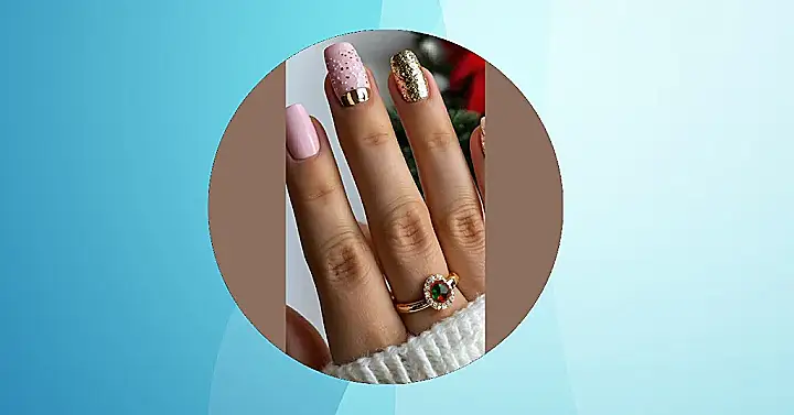 Seriously, these nails scream “Winter Wonderland”! They’re so pretty, they almost make you want to build a snowman…almost. The mix of pink and gold is like a delicious candy cane, and the little gold accents on the pink nails are like tiny Christmas lights. Plus, that ring? It’s the perfect accessory to complete the whole magical Christmas look! You’ll be the most stylish snowflake at any holiday gathering.