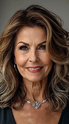 The lady in this picture has got it going on! She’s rocking a hairstyle that’s perfect for someone over 50 – lots of layers that add volume and movement. It looks like she’s got the perfect balance of color, too – a little bit of blonde, a little bit of brown, and maybe even a touch of gray. Who needs to hide those beautiful silver strands, right? This look is sophisticated, but also super fun. It’s like she’s saying, “I’m still young at heart, and I’m not afraid to show it!”