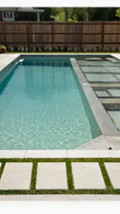 Imagine the Instagram photos! Seriously, this pool is so stylish, you’d have a million likes in minutes. Those grassy strips between the stepping stones are like tiny nature trails leading to refreshing bliss. It’s more than just a place to swim; it’s a statement! It’s the kind of poolside paradise where you’d totally forget about homework (at least for a little while). Who needs a beach when you have a backyard this cool?