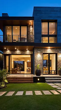 What’s neat is how this modern design mixes with nature. The stonework on the bottom floor gives it a grounded feel, and all those plants are basically saying, “Hey, we’re stylish AND eco-friendly!” Someone clearly had a great time designing this place, thinking about how to make it both awesome and a fun place to live.