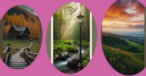 This picture makes you want to grab a warm sweater and take a stroll through the crisp autumn air! The trees are just starting to show off their beautiful fall colors, turning from green to a mix of yellow, orange, and red. It’s like the trees are putting on a costume party for the season, and they’re all dressed up in their fanciest outfits. Even the ground is covered in a blanket of leaves, and it looks like a comfy rug for a big, cozy garden picnic.