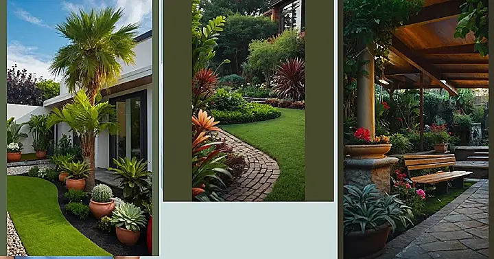 This backyard is a tropical dream come true! Imagine yourself sipping lemonade on a sunny afternoon, surrounded by lush greenery and the soothing sound of palm leaves rustling in the breeze. You’d never want to leave this beautiful oasis, especially with the vibrant colors and the perfect combination of plants that make this outdoor space feel like a relaxing escape.