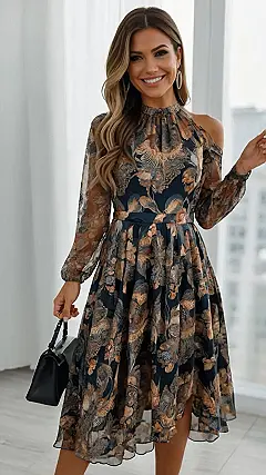 And let’s talk about the details, because those are what really make this dress stand out. The high neckline and sheer sleeves give it a cool, edgy vibe, while the flowy skirt adds a touch of romance. It’s the perfect dress for any party, whether you’re going to a school dance, a casual dinner with friends, or a fancy event. So go ahead, slip it on, and let your inner fashionista shine!