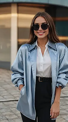 Picture this: you’re strolling through Istanbul’s Grand Bazaar, dodging tourists and haggling for the perfect Turkish delight. But you want to look like you own the place, not just visiting! This outfit screams “I’m important,” without yelling it. With a flowy satin top and a classic pair of black pants, you can conquer the city, knowing you look effortlessly cool, even if your Turkish language skills are limited to “Merhaba!”